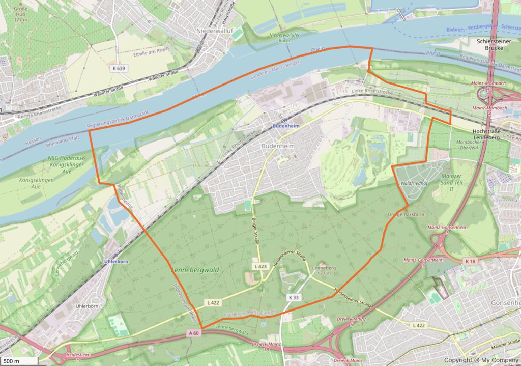 Die Gemeinde Budenheim, einzige unabhängige Gemeinde im Landkreis Mainz-Bingen ohne Stadtstatus, liegt im malerischen Rheinhessen, nur neun Kilometer westlich des Stadtkerns der rheinland-pfälzischen Landeshauptstadt Mainz. Eingebettet zwischen dem nördlich fließenden Rhein und dem Lennebergwald, der sich im Süden bis zum Westen erstreckt, prägt diese Lage den Wohnort Budenheim. Im östlichen Bereich der Gemeinde erstrecken sich die Mainzer Stadtteile Mombach und Gonsenheim, während südlich Mainz-Finthen zu finden ist. Den westlichen Abschluss von Budenheim bildet der Ingelheimer Stadtteil Heidesheim am Rhein. Jenseits des Rheins erstreckt sich Walluf, ein Teil des hessischen Rheingau-Taunus-Kreises.