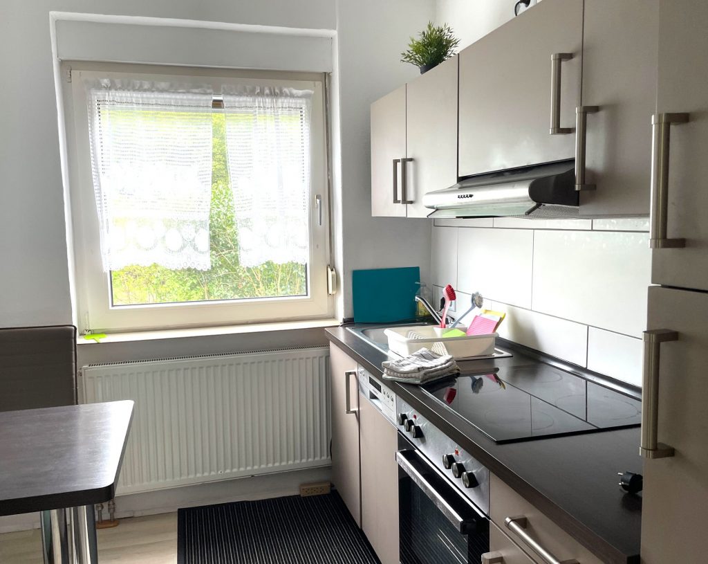 - Vollausgestattete Küche mit Herd, Backofen, Kühlschrank, Kaffeemaschine und Wasserkocher