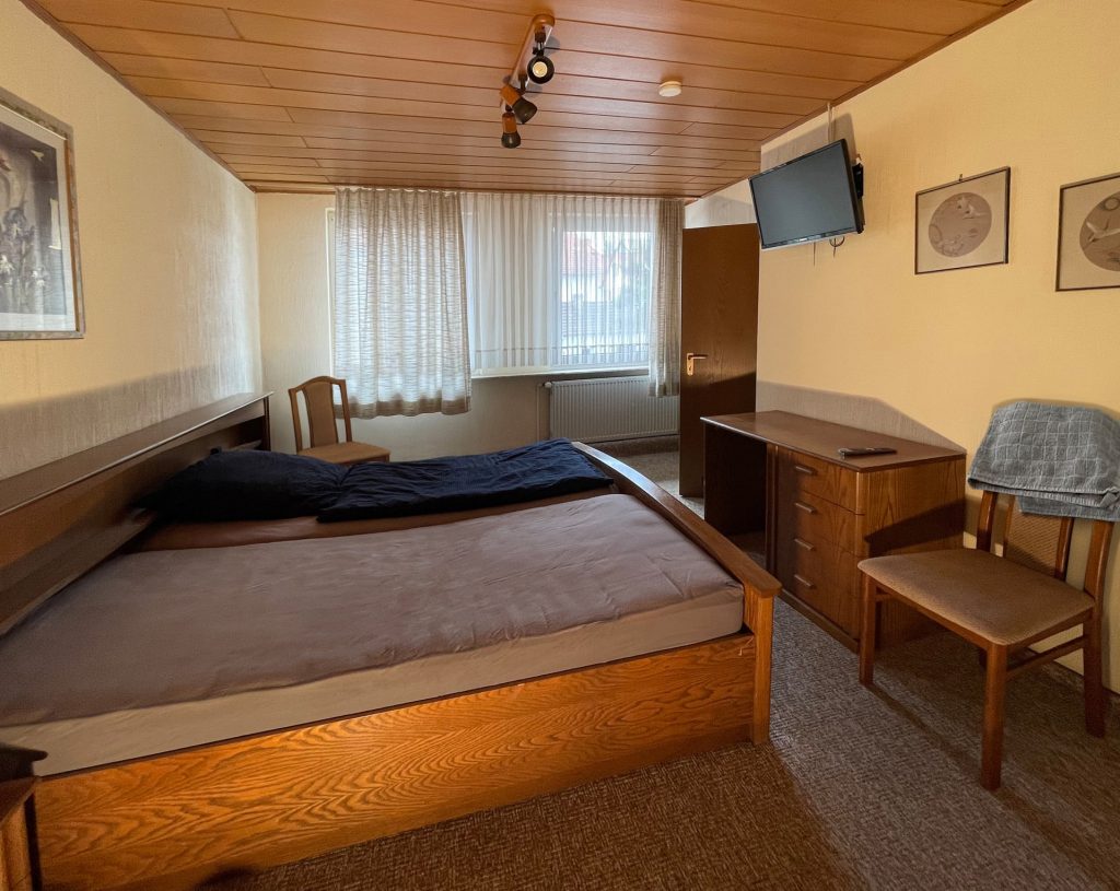 - Zimmer mit 1 Doppelbett, Sitzmöglichkeit, Schränke, TV